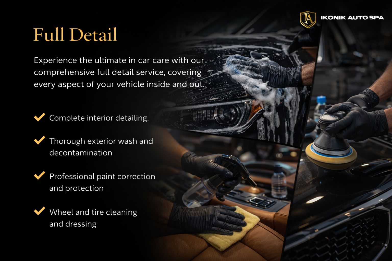 Experience the ultimate in car care with our comprehensive full detail service, covering every aspect of your vehicle inside and out